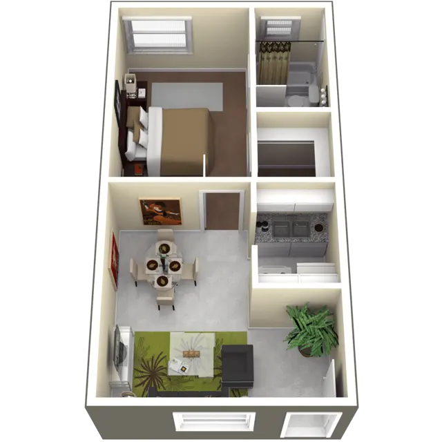 At Jade Gardens Apartments, you will find a variety of studio, one, and two bedrooms apartments, all of which have been thoughtfully laid out to provide you with a roomy and inviting space to call home.